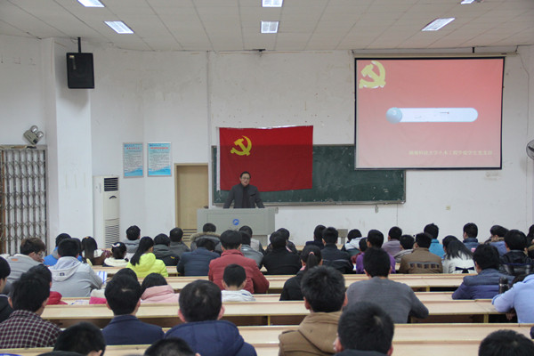 大会在庄严肃穆的国际歌中拉来序幕。首先,由曾竞兴老师带领全体新党员进行入党宣誓,宣誓过程庄严凝重,每位预备党员都以底气十足的宣誓声来表明自己对党坚定的信念,忠诚的决心和庄严的承诺。接着,虢利钢发表讲话,他向全体党员提出了明确要求,要党员做好自身工作,坚定共产主义信念,明确党员的义务与责任,要以实际行动终身践行入党誓言,在为人民服务的行动中实现自我价值,做一名优秀的共产党员。随后,书记易贵元提出,全体党员应协调好学习工作与生活之间的关系,积极发挥模范带头作用,才能做好表率。之后,曾竞兴指出,各位党员在不断学习党章的过程中,要明确身为党员的权利和义务,要做好先锋带头作用,全心全意为人民服务。最后是老党员代表和新党员代表的讲话和表态。其中新党员代表李宗武的表态说出了所有预备党员和正式党员的心声,他表示自己将会恪守在党旗下的诺言,时刻保持共产党员的先进性和先锋模范作用,努力使自己成为一名优秀共产党员。