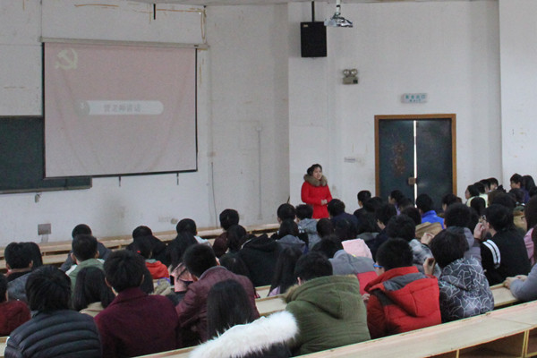 大会由党建办公室主任侯宇楠主持。伴随着国际歌的奏响,大会正式开始,全体学生党员庄严肃立,行注目礼。激昂的歌曲结束后,易书记上台讲话,他主要谈到了三个问题:一、春季回暖,同学们应该搞好宿舍卫生,预防结核病;二、年轻人应该在20~30岁之间发挥自己的能动性,创造价值;三、分析了太阳集团tyc539近年的就业形势,强调努力学习的重要性。接着曾老师发表了讲话,她主要强调了同学们的学习和安全问题。她说新学期应该指定学习计划,并提醒学生党员应起到模范带头作用,努力学习,处理好人际关系,防止上当受骗而造成不良后果。最后,主持人又对新学期的工作做了简单介绍,主要包括蹲点党员对所负责班级挂科情况的统计,假期生活中家庭发生重大变故同学的调查,以及发展品德出众的新党员等问题。