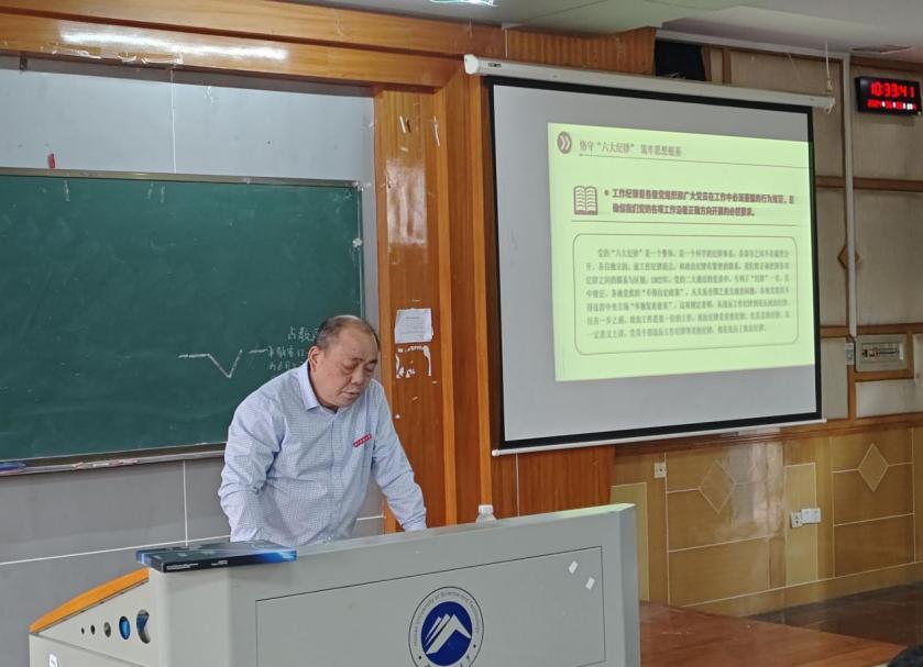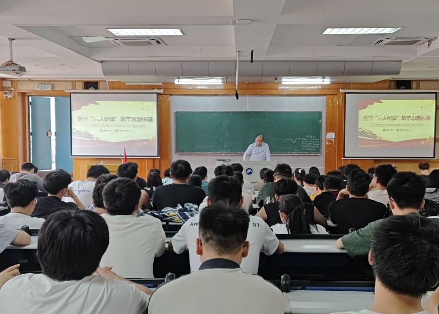 2024年6月6日,太阳集团tyc539党委书记万文以“恪守六大纪律,筑牢思想根基”为主题,在第五教学楼2-1教室为全院学生党员讲授专题纪律党课。