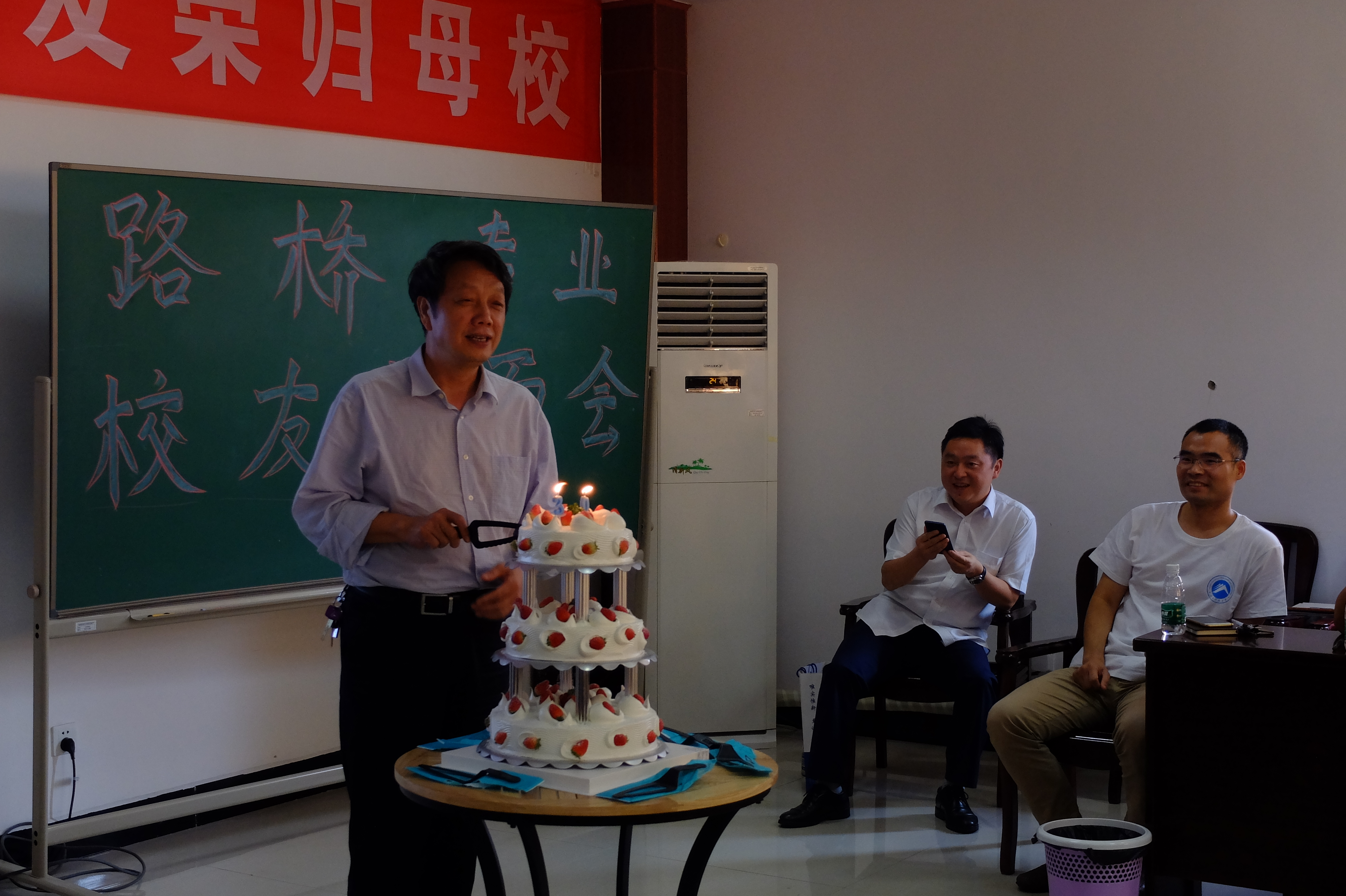 会议最后,大家齐唱生日歌,许下了对太阳集团的美好祝愿。分食蛋糕、发放餐劵之后,81级校友莫时旭、94级校友查玉彬分别发表讲话,回忆了母校对他们之后的人生的影响,都表达了太阳集团的感激和怀念之情。