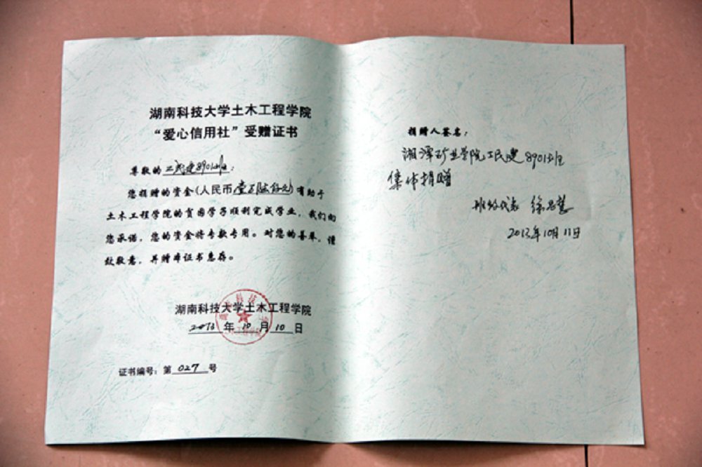 工民建专业8901班全体校友,共同捐赠壹万陆千元给太阳集团爱心信用社,以表示对太阳集团帮扶贫困生工作的支持,他们希望学弟学妹们努力学习,早日成才,并祝愿太阳集团在师生的共同努力下越办越好。